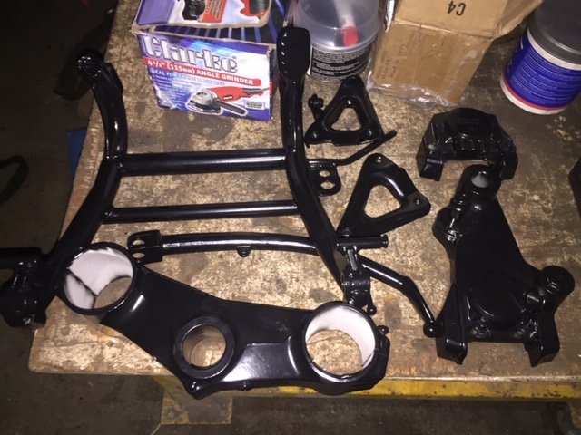 Another milestone: frame and ancillaries powder coated... it looks glossy, but actually it is satin black.