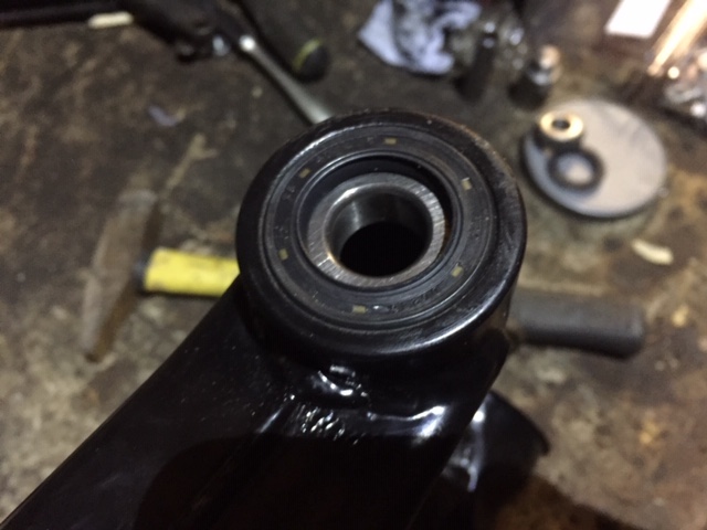Update; cleaned the swing arm pins, inserted bearings and re-installed the swing arm (see other thread). Also re-attached the final drive and one shock to keep the whole thing together.