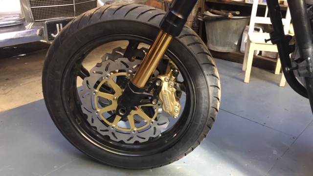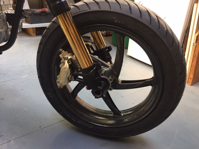 I also cut to size and fitted the rear fender with two brackets to the swingarm so that it moves 'with the tyre'.
