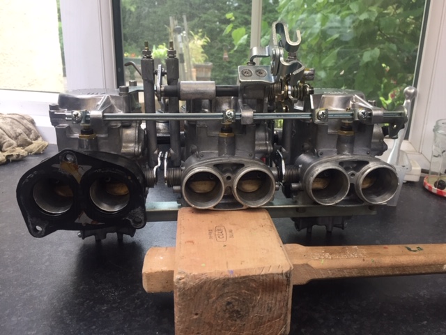 Finally unwrapped the carbs that Oz refurbished for me two years ago. Looking nice!!
