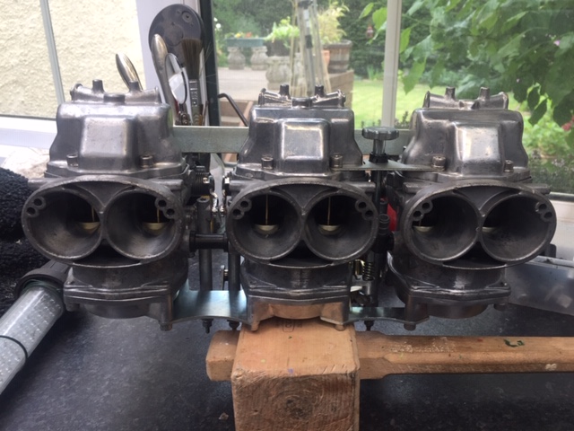 Not much progress today, put the carb rubbers back on using new stainless bolts and then fitted the carbs. I was surprised how tight and stable the carbs are with just the rubbers to support them, They will get additional support where the airbox used to be, but they are pretty secure as they are now.