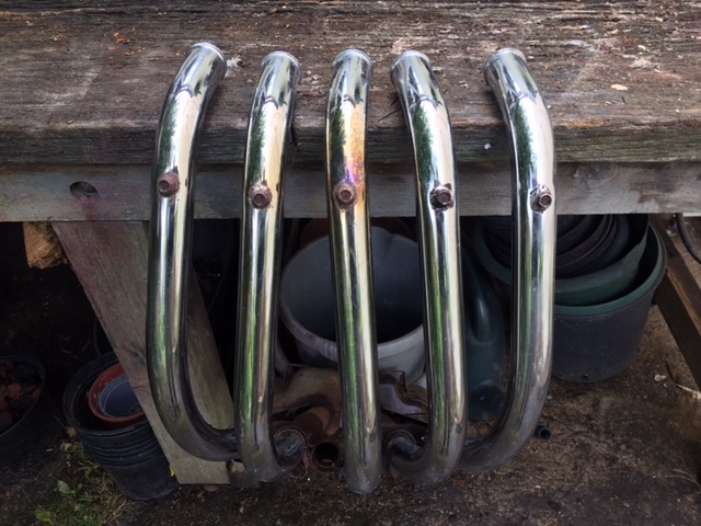 As the process for finding someone for the exhaust build has stalled, I cleaned the pipes that came with the bike that I initially had written off as rusted and broken. They came up surprisingly well and there are only a few small holes that I can easily weld shut. I think I'll hang those on once I fitted the final missing pipe that I will getting tomorrow and at least I have something so I can trial start the bike. The system has collector boxes, but they are rusted out inside, so it will still be loud!