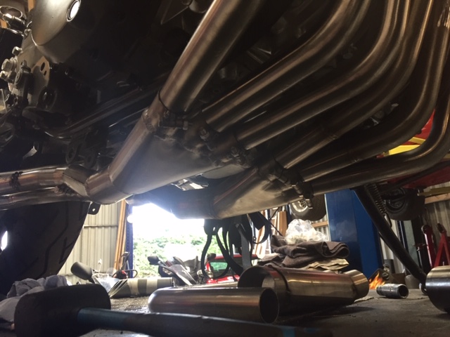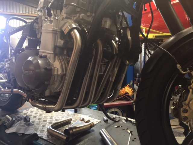 Bike is still with the exhaust guy, who is having trouble fitting down pipe no 1.