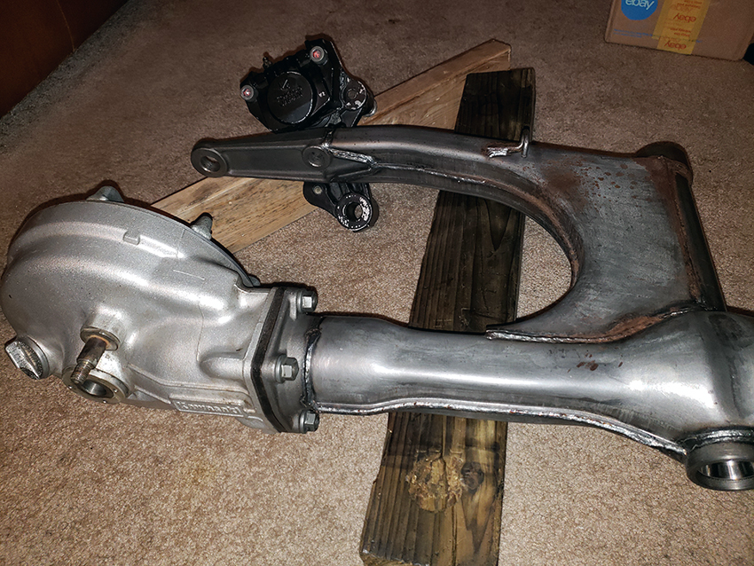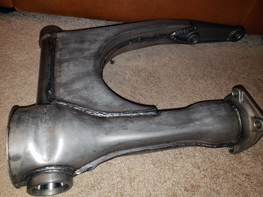 The swing arm will go into vinegar to remove all the rust. After welding the notches, I will do the standard black powder coating after all. Bearings upgraded, it will wait for the frame ready to go in.