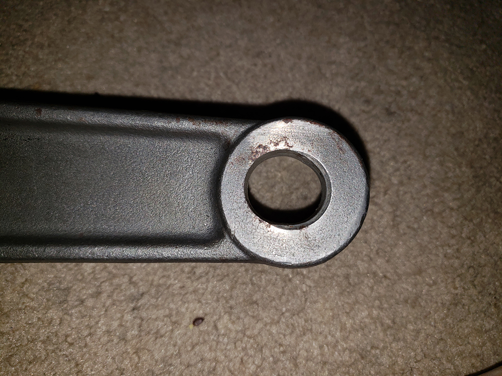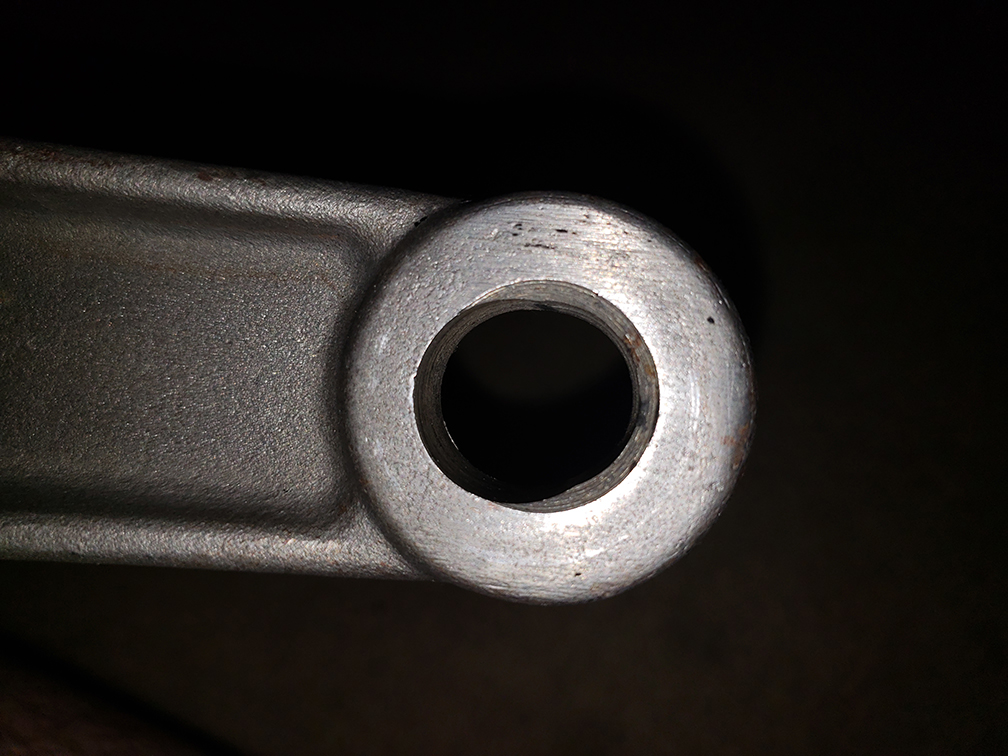 Needless to say, the swing arm is shot - the hole for rear axle. I can be re-bored and a steel insert made and welded. A pretty straight forward thing, but I don't have the machinery for it.