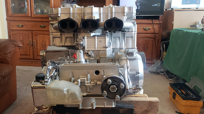 The right hand engine cover missing - because I decided to chrome it after all, and just came back from the shop. It will be ready in 2 weeks. And a good thing these days, all done safely dealing with one person only and at a distance. But whom am I kidding. Construction workers risk their lives mingling with coworkers and tenants, engineers etc. every day.