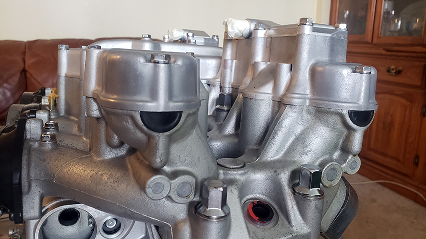 New plugs installed with Yamabond. The cam cover gasket ordered from Kawasaki. They don't have stock but aftermarket at $25. Fine with me.