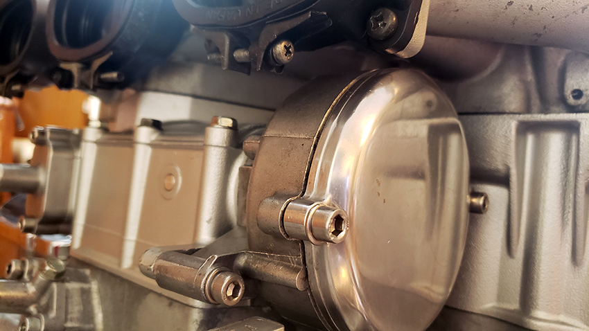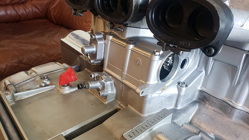 This is a different cover from the one in the other photos. And this one is open to the emission control valve, which I will install. It's an 'outboard' engine, so an easy access to everything. It will be easy to change that on the fly.