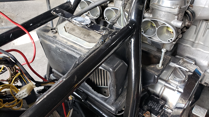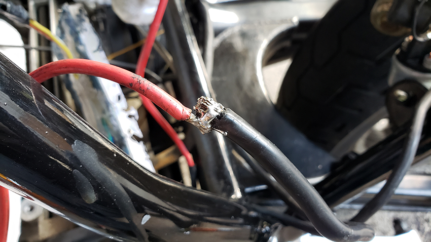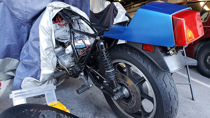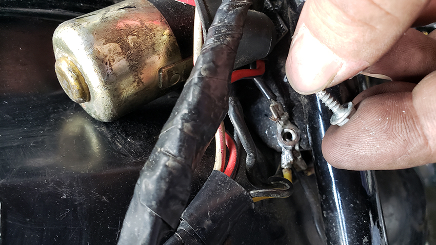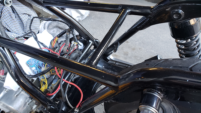 The ground and positive to the battery (there is a really small one cramped into the modified rear cowl) were extended. In quite a horrible way. There will be lots of work bringing the harness to what it should be. No wonder the bike had some cranking, especially when hot, problems! And who knows what the starter looks like inside. Judging by the state of other components, how 'half-assed' they were put together and maintained, everything has to be checked to eliminate any compound negative effect on how the bike ran.