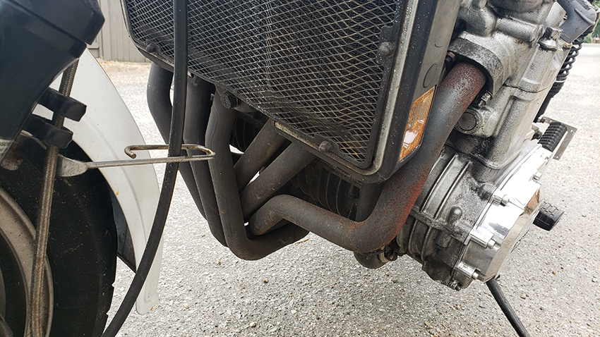 Another bit about what's on the bike - the exhaust. It's a 6-1. It will stay for now, but at one point, when my stock exhaust (which I'm making from bits and pieces), will be complete and perfect, they will come off. Given I will make and weld the brackets for it - they were also cut off! And so was the mounting for the center stand... The exhaust will be probably the last thing I will do on this bike.