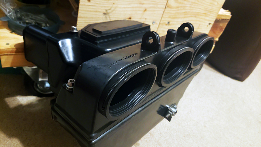 I've been fishing for undamaged parts of the air intake for a very very long time. Bought some that proven to be faulty in one way or the other. (they can be, and will be, fabricated to be fully functional). Super happy to have finally a set that needs no tweaking! All cam from 4 sources, and made a one complete set. The K&N filter is for a mysterious reason not fitting, and will need a bit of shaving on the edges adjustment. Not a big deal, if you don't mind it protruding a bit above the airbox line at the moment. It will be corrected.