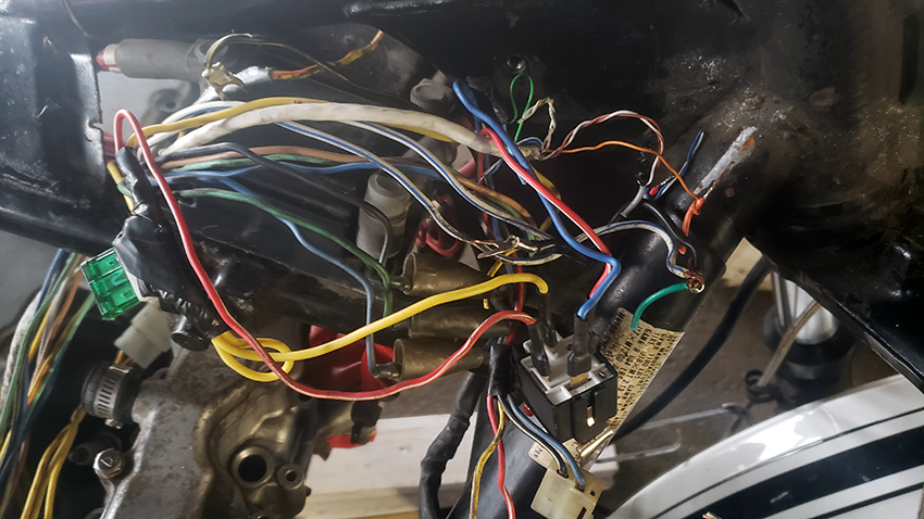 I got the harness out - FINALLY!!! What a bunch of mess. Connections soldered, no color consistency, weird routes, all around - a ToTAL MESS!!! No wonder turn signal didn't work, a fucking weird rear stop signal didn't work!!! I rode the bike, but rode like shit. Idle didn't work. But that's another subject, asn there were more fuck ups on this bike than the wiring.