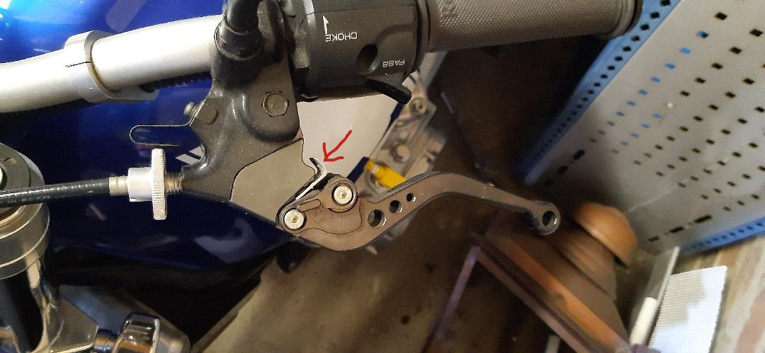 ). I too found that the throw wasn't long enough, even with the lever adjusted all the way out. What I needed was one more 'click' on the adjuster, so what I did was fit a clip I had lying around (red arrow) which basically gave the lever the equivalent of one more click of adjustment 'out' -that gave enough throw to fully disengage the clutch. I was going to drill & fit a grub screw to the perch to do the same job, but never got round to it, the clip is still there doing it's job 12 years on. The only thing is the clutch lever is now a bit of a stretch from the handlebar, but I have average sized hands & it's still OK.