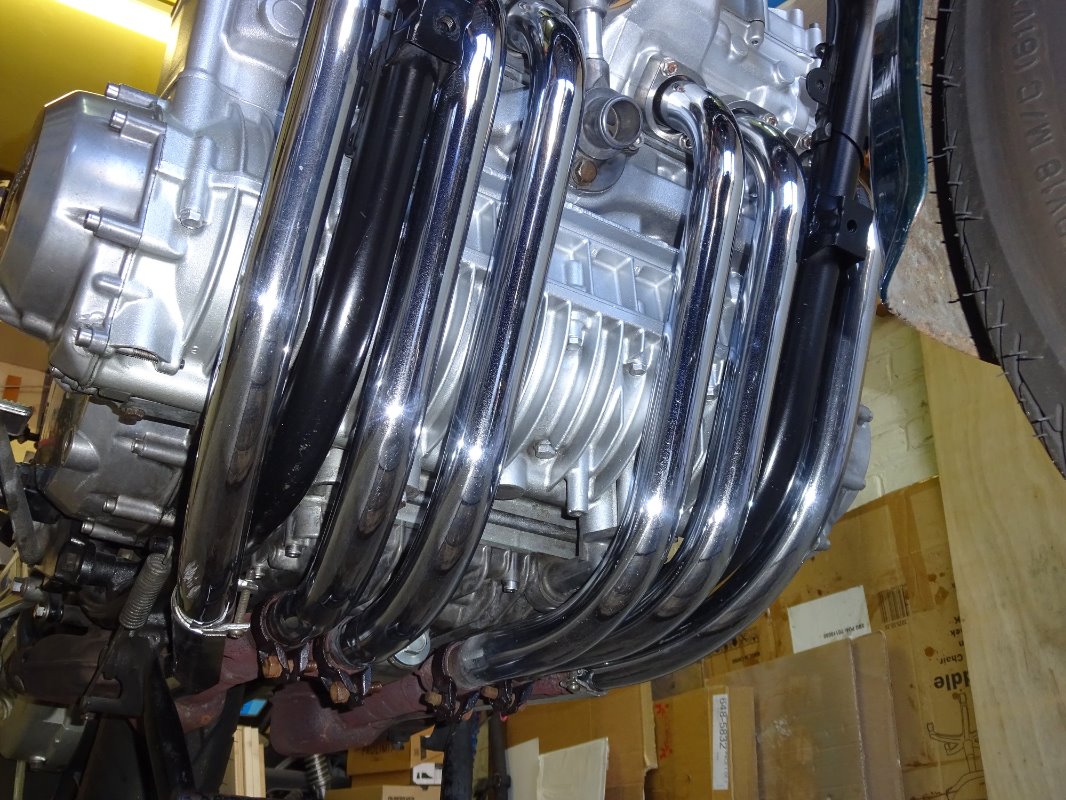 Yes, shame that the radiator covers the headers as it looks so much better without (see pic). Worth noting that the radiator has to dissipate around the same amount of power as the engine at its rated condition - so 120-130 hp or 90-100 kW. However, this level of heat rejection usually occurs at very high speeds so there will be a good flow of cooling air. The most challenging condition for the radiator is relatively low speeds and high loads - such as long uphill gradients in very hot weather. I am sure our 1300's would also benefit from a more powerful electric fan for those hot days in stop start traffic. Even more roasting for the rider!