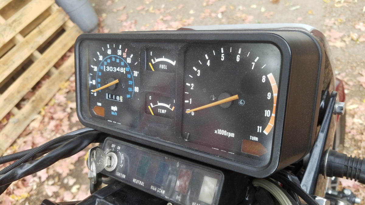I'm thinking that I'm closer to the end of this project. I noticed that one of the screws that hold the faceplate onto the speedo/tach has vibrated out of it's hole.