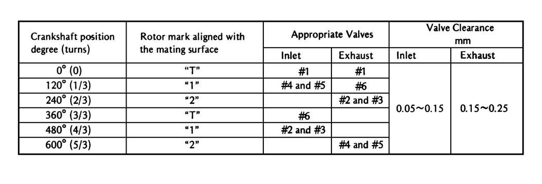 When I made my adjustments I simply looked for the "T" mark, without making sure of the position of the crankshaft with respect to the camshafts.