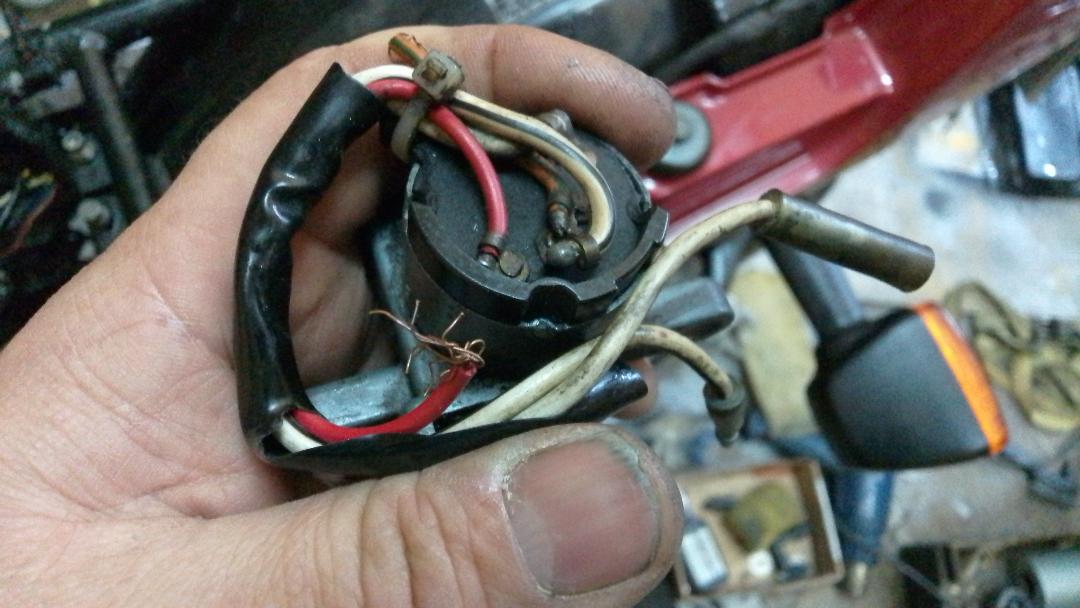 I found a jumper between the white and white wires with a black stripe, also the orange wire with a green stripe that connects to the starter solenoid is powered by a yellow wire that I don't know where it comes from.I think the red cable was left simply because it was the same color as the motorcycle, I can't find another more important reason.