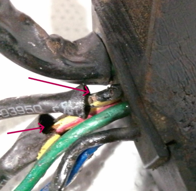 The white cables with a black stripe and yellow cables with a red stripe have been spliced because they have been damaged.