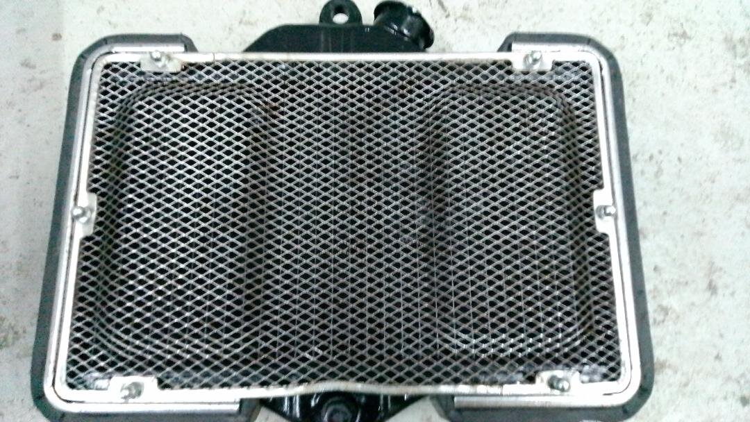 I returned to the garage with Christine to continue assembling parts, this time the radiator.I bought the side protectors and the front grille from a French scrap dealer, the truth is that he sent me the complete kit, with its protective screw caps, the money works miracles.