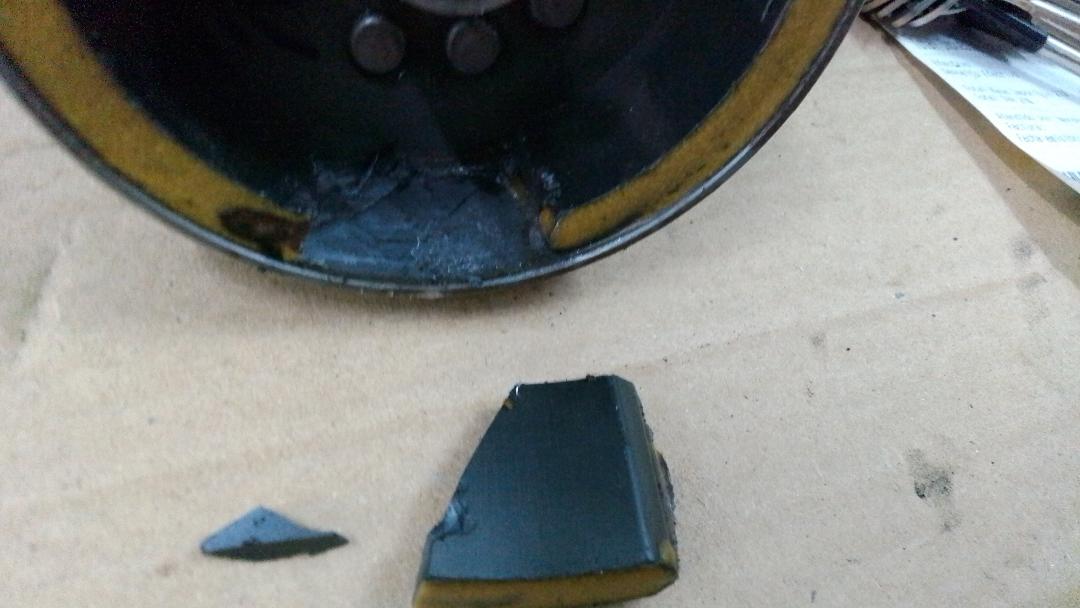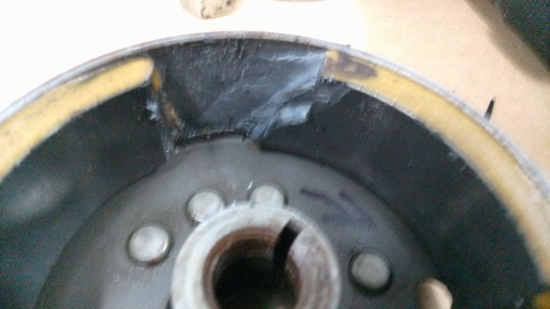 As I approached the finished work table he showed me the rotor, "look, it didn't hold the pressure of the hydraulic press and one of the magnets broke"
