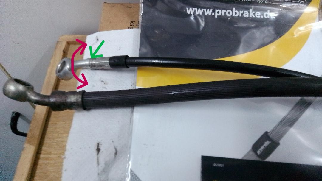 Tired of having to increase braking power by dragging my feet on the ground, I decided to replace the original brake lines with metal ones.