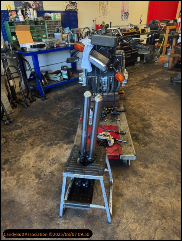 So far, new Fork and dust seals. Taper roller bearings in the head. I also noticed he was able to get the rear master