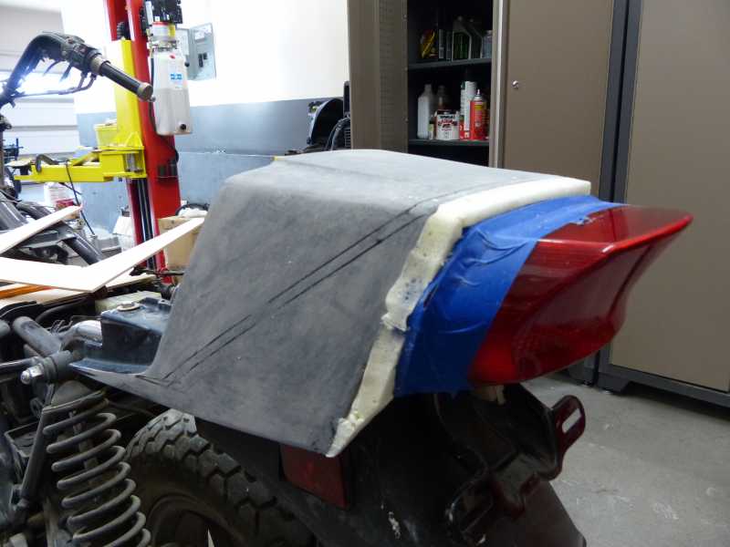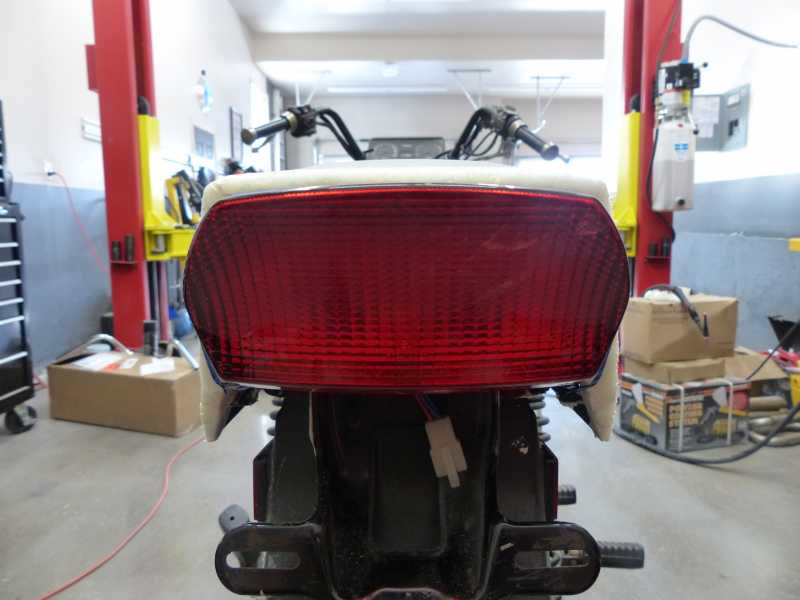 This site's so quiet I think most of the members are hibernating!!! So that being said, Here's what happens when I take a GPZ 1100 taillight and marry it with the A model tailpiece and then start to get creative with spray foam, balsa wood and epoxy glass. This is by no means anywhere close to the finished look but I thought maybe a little inspiration might be in order.
