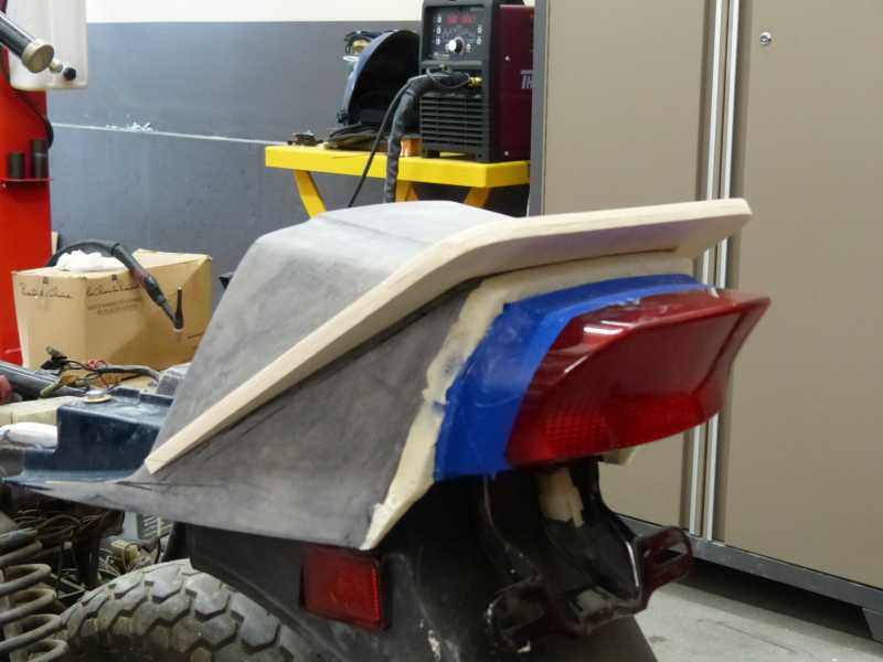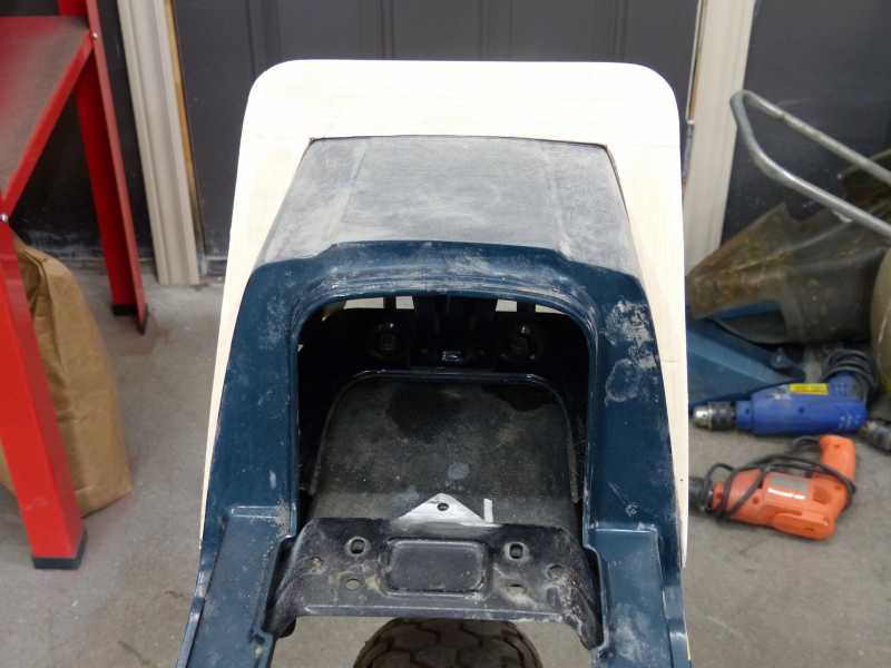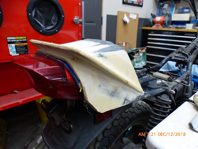 to answer your question, most of the faring on the tail piece is done. I'm quite happy with the build out. I can literally sit on the tailpiece and it's as sturdy as a rock. (I weigh 270 lbs.) At the suggestion of Trikebldr, one of our former members, I put a floor in the tailpiece and removed the tool box. The tailpiece is now probably twice the capacity of the toolbox and the box is sealed so nothing will fall out of any of the openings at the bottom. Another couple of hours of work and it will be ready for paint.