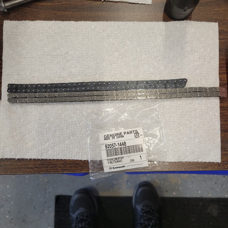 It's done !!! Shortened the KLN110 camshaft drive chain from 88 links to 72 links for the water pump drive chain.