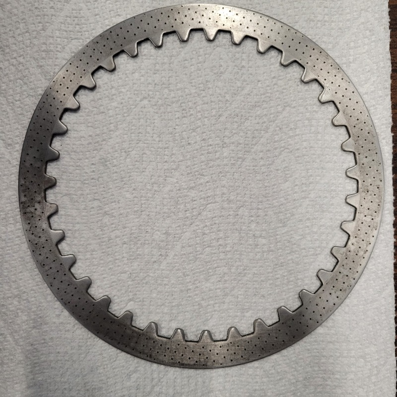 Next, I decided to clean / inspect the clutch . 6 of the fiber plates were stuck to the steel plates and I had to tap them to break free. Light surface rust on the steel plates so I cleaned them off with 400 wet /dry sand paper.