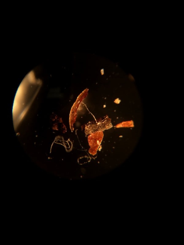 Further to trying to discover the source and type of Crap in my filter I removed the fuel from the tank. Had run it down to "Reserve" on the last ride. Filtered what was draining as it came out of the tank. Pictures are a bit better now that I've kind of figured out how to hold the camera to the microscope. These are 40X magnification.