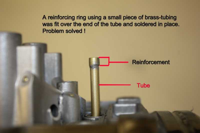 As all 3 of my choke tubes have split, but also split most of their length, as well as sorting the 1 missing jet (not too difficult to fab as you say) and reinforcing the ends, I assume I must also remedy the longer splits and the risk they present of the tube (which I assume is immersed in the same depth of fluid as per float height via the bowl choke jet) drawing fuel in throughout the height of the split and presenting much more of a change to fuel flow that just the missing jet would.
