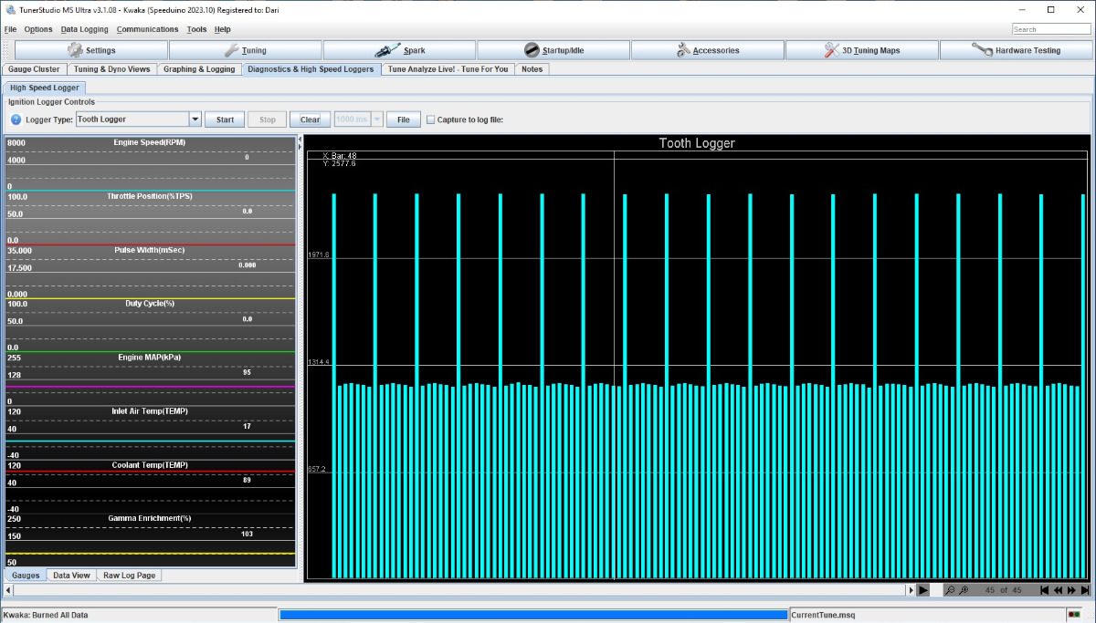 So, MAX9926 conditioner have arrived. I also made the VR sensor adapter plate. And some pictures of signal logging through tuner studio.