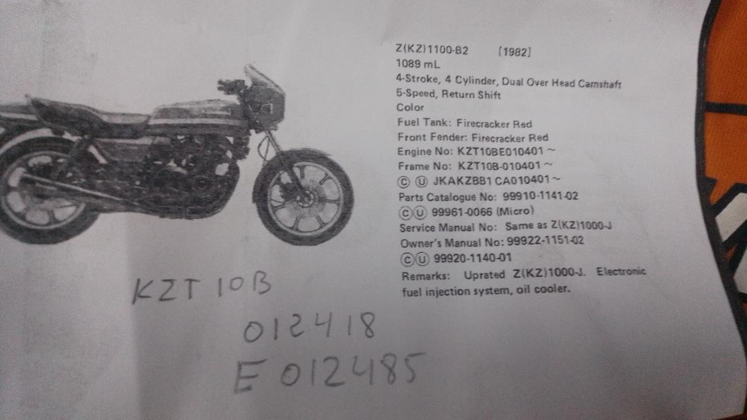 The chassis numbering corresponds to the model KZ1000 J. '82.