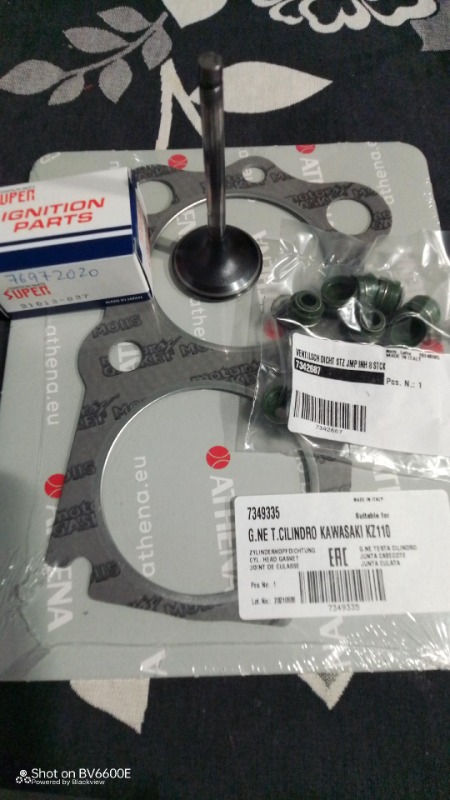 So I was forced to order a new valve, I took the opportunity to order more parts such as a head gasket, shims of various sizes, a valve seal set and a valve seat grinding kit.