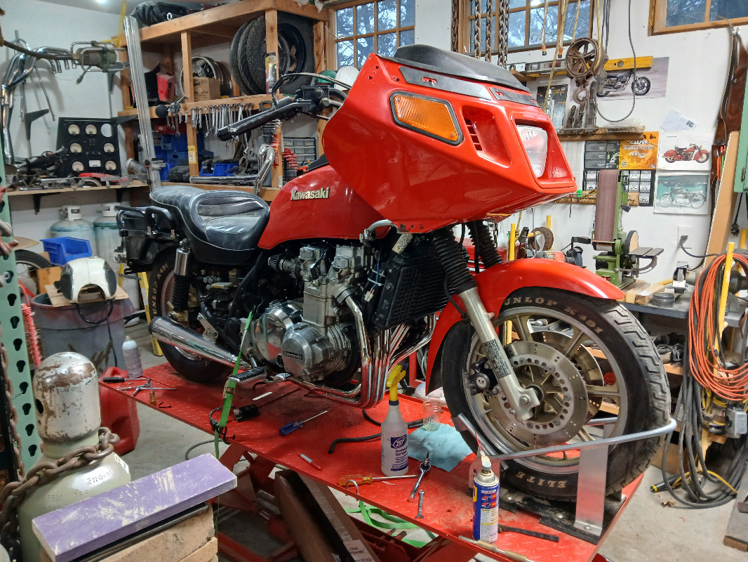 So far I've acid cleaned the tank and restored the radiator to it's original location. I may go back to placing the radiator where a saddlebag usually goes but for now I'm just trying to get it running. Presently the fuel pump doesn't run when the ignition is turned on. I checked and found no voltage to the pump so I'll be reviewing the wiring diagrams to see which relay is reluctant. There are a lot of relays on this machine.