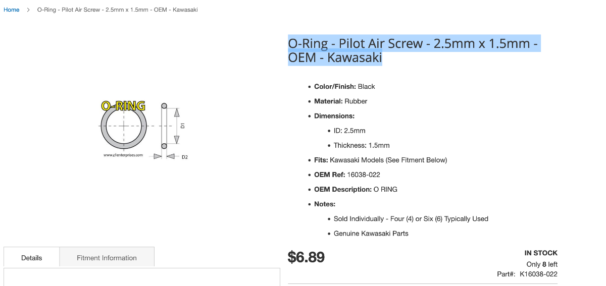 "Oring for Idle Air Needle 3.0mm X 1.5mm $0.75 each"