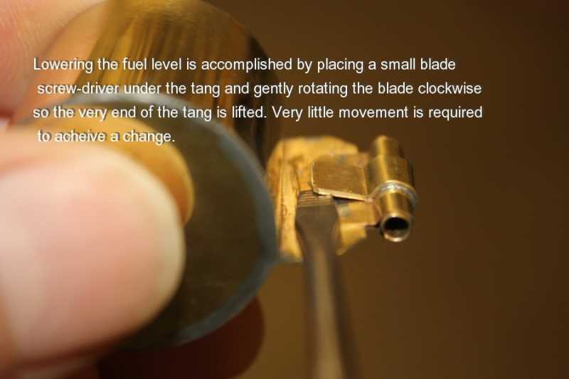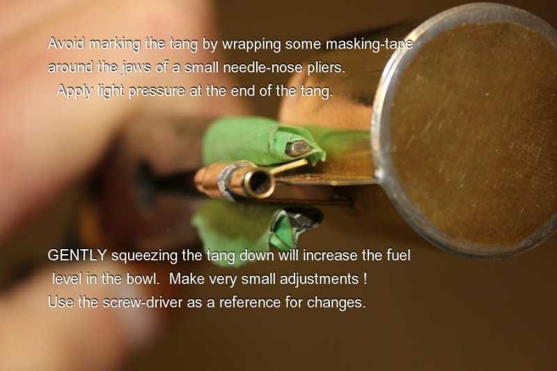 Q #2 - "How do I adjust the brass-floats to get the correct fuel-level"?