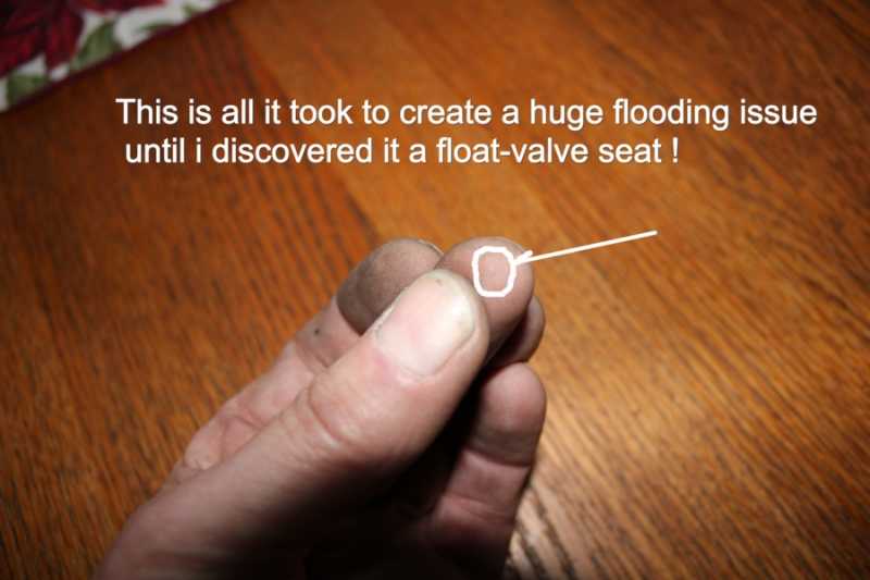 F&%#K)(*&^% ! Another half-hour on my knees with a flash-light but no luck. One last chance: I robbed the only one I had left which was from the bench-carb. I use for making the floats. Needless to say I changed my install technique and got this one on successfully! I'm pretty confident that some time next Spring when I am cleaning out the shop, I'll find both of them, after I've stepped on them and rendered them useless!