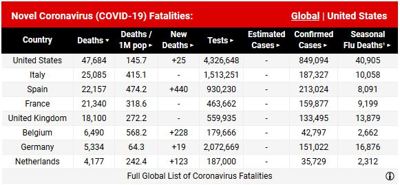 Check out this chart which should put a more balanced perspective on this pandemic. Also look at the numbers of deaths caused by the Wuhan Flu compared to seasonal flu caused deaths. Also please notice that the USA has had fewer per capita deaths than any country except for Germany. The source is here: