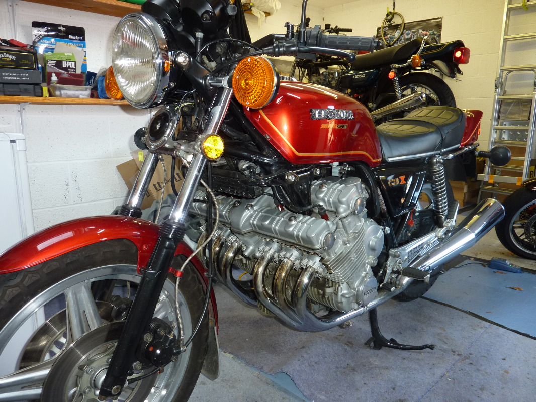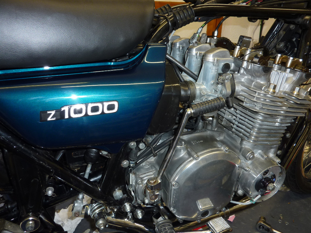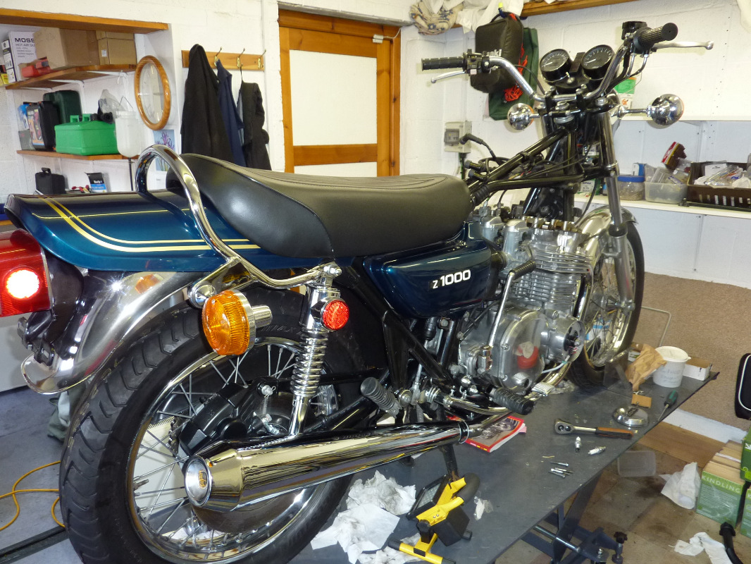 The Z1000 was a US import in good running order and generally in very good condition - Ive tried to keep her as original as possible, still has original wheels and chrome etc - had to ditch the after market pipe as it was grotty (hence the Italian Busso system) , and paint was badly faded and needed a respray, but at 43 yrs old you musnt grumble. Basically she needed a lot of TLC and serious recommissioning.
