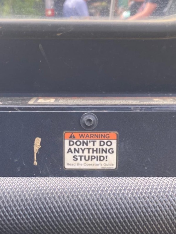 Had a similar sticker on the door of the jump-plane. " Don't do anything STUPID and you'll probably be OK"