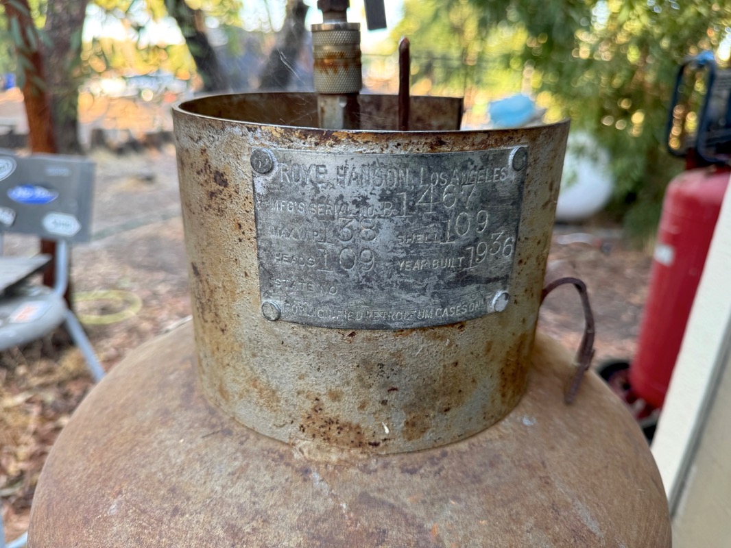 My AC is > 300 feet away... where I have adequate power. For high flow situations, need an accumulator. What to use? Found this... check out the manufactured date!