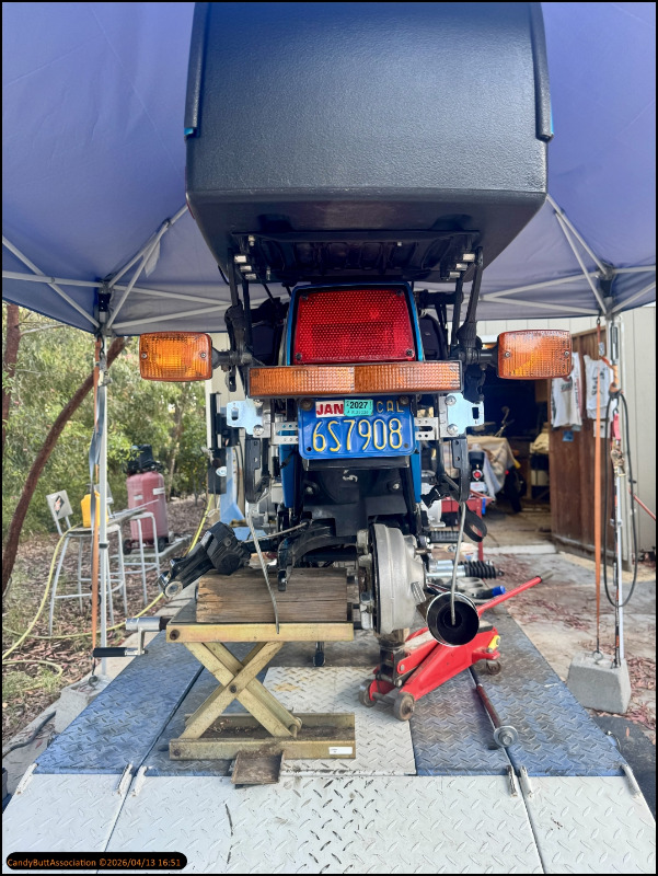 Well, shock absorbers must be removed, brackets, moved, and jacks used to raise the swing arm so that the axle can clear the muffler.