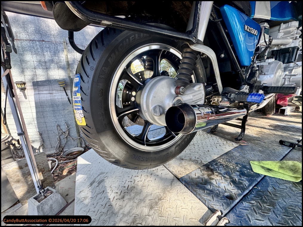 Cleaned and polished the rear rim. Installed and balanced the tire.