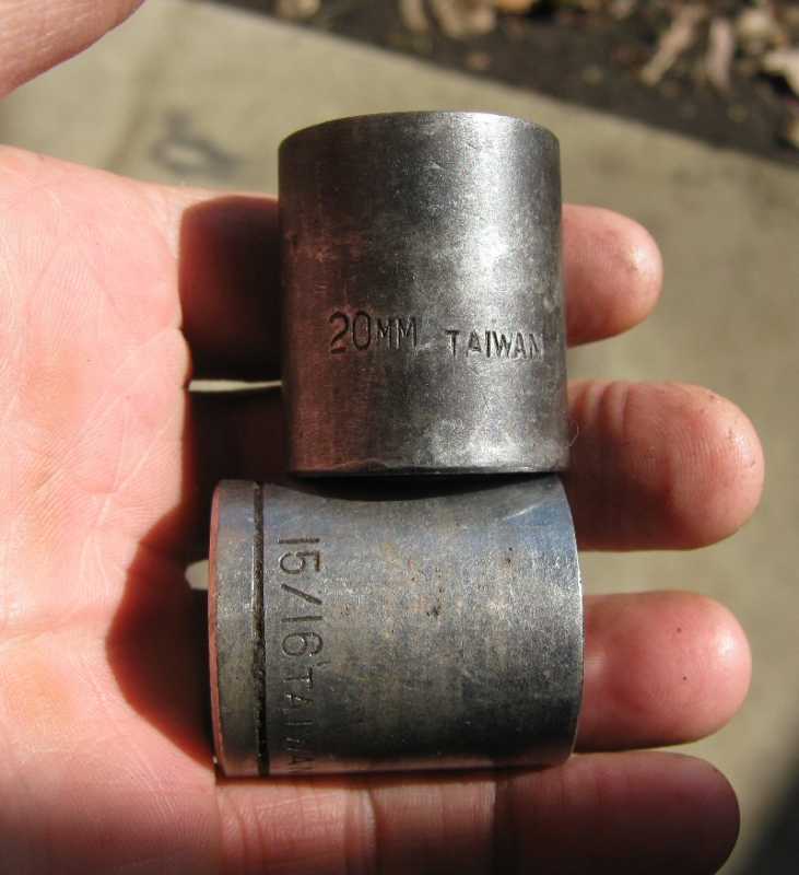 Hi all, I was checking out my parts bike front forks the other day and took off the top caps to swap onto my bike as they were in better condition than the ones on there and I found an interesting piece of "equipment" to space the springs I guess to stiffen the front ??, a couple of sockets, one looks like an impact wrench socket (20mm) that has been turned down to a set length the other is just a standard socket (15/16 x 1/2 drive), seems to be easy and I guess it worked. Always a way to do stuff that's not in the book, plus the drive hole in the sockets allow for the air pressure to get thru from the caps