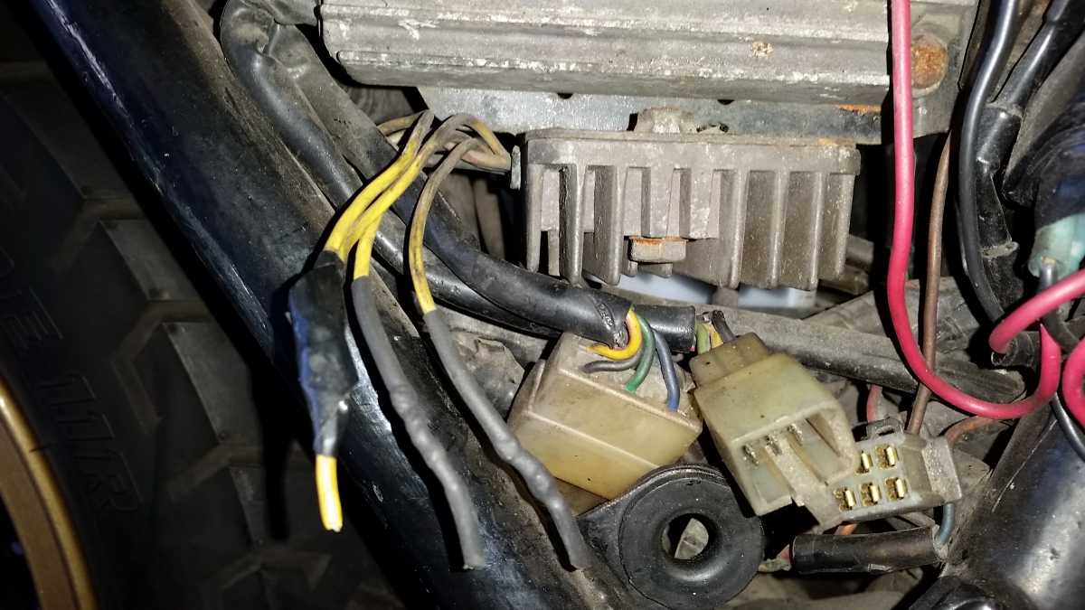 The 1979 and 1980 models had a connector on the stator output wires. It was insufficient to carry the current output. The result was that the connections overheated and the plastic connector plug would melt. For this reason, most owners cut off the connectors and soldered the wires together. Your photo shows the heat shrink over the wires that have been soldered together.