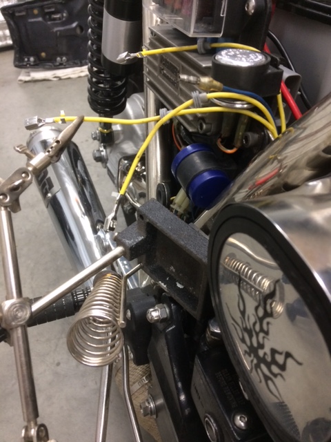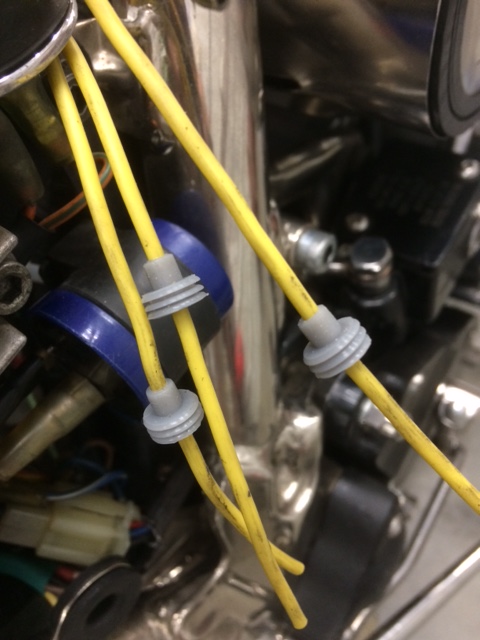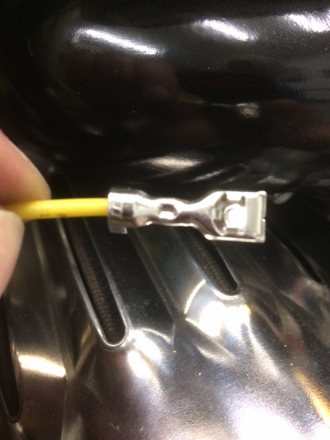 I find it easier to pull the bare leads c/w sleeve & including the BLUE oil PSI wire through the frame first, then attach the terminals. To hold the leads for soldering I used one of these
