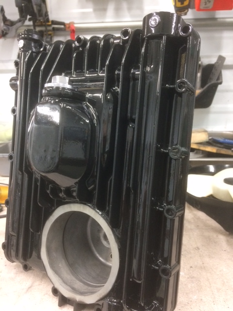 Painted the oil pan after glass-beading the outside. Not concerned about the coating "insulating" the pan and preventing heat dissipation. One could debate this topic from the point of view that with a massive collector within 3/4" of the pan, the collector puts more heat into the oil then the cover could ever dissipate which is why I chose to double-wrap the collector.