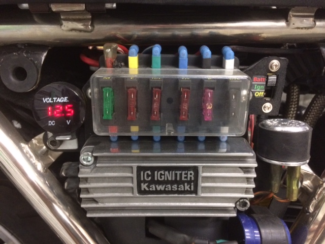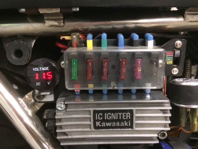 I'm not concerned about the voltage drop through the harness. You have to appreciate that EVERYTHING powered is being fed by the harness. All lights and lighting, ign-coils, voltage regulator for the Temp. and Fuel gauges plus the gauges, and all the other stuff !